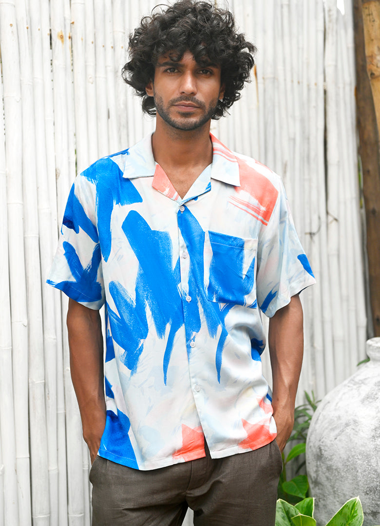 The Cuban Shirt in Fluidic Ocean Abstract Print from our Summer Resort Collection.